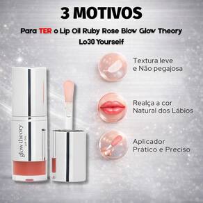 O Lip Oil Ruby Rose Blow Glow Theory é o seu aliado perfeito em diversas situações. Use-o diariamente para manter os lábios hidratados e protegidos, como um primer antes do batom para um acabamento impecável, ou sozinho para um visual natural e radiante. Ideal para todas as estações do ano, ele garante lábios macios, suaves e com um brilho irresistível em qualquer ocasião. Perfeito para usar no trabalho, em festas, em encontros ou em qualquer momento em que você queira realçar a beleza dos seus lábios.
