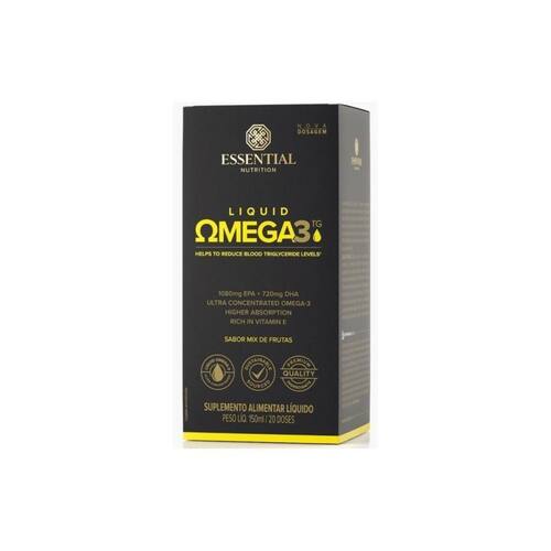 Liquid Ômega 3 TG Essential Nutrition 150ml Mix de Frutas Sabor: Mix de Frutas Suplemento de ômega-3 na forma líquida, com alta concentração de EPA e DHA., com alto grau de pureza e rigoroso controle de metais pesados. Apresenta alta concentração de EPA e DHA e está na forma TG. O que é TG Quando o ômega-3 está na forma de triglicerídeos TG , ou seja, na mesma forma em que é encontrado na natureza. O ômega-3 é amplamente estudado pela ciência por suas diversas propriedades, por isso o Liquid Ômega 3 TG pode ser indispensável no seu dia a dia. Sugestão de uso: Consumir 7,5ml 3 colheres de medida ao dia ou conforme orientação . Marca: Não Informado