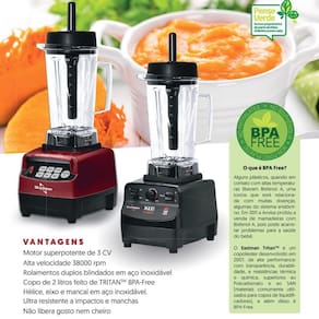 O Supreme Blender é um liquidificador de alto desempenho perfeito para casas de sucos, bares, cozinhas, hospitais, creches e de gastronomia que querem criar novas texturas e sabores para suas receitas e atendem regimes de trabalho mais pesados do setor de food service. Suas principais vantagens são sua elevada potência, que entrega até 3 CV, o suficiente para quebrar gelo e polpas congeladas com facilidade. Visando a excelência, este liquidificador de alto desempenho, visando a excelência, é um produto único que permite triturar e misturar frutas inteiras, fazer sucos verdes, sopas, patês e purês com extrema rapidez, transforma grãos em farinhas integrais, faz leites sem lactose, drinks requintados, smoothies, vitaminas, sobremesas congeladas, tritura gelo com facilidade.