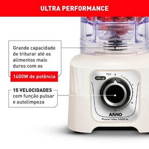 Liquidificador Arno LN64 Power Max San Cristal - 15 Velocidades + Pulsar, 3,1 Litros, 1400W, Marfim - 110V