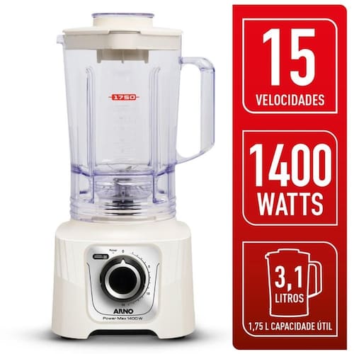 O liquidificador Arno Powermax 1400W conta com incrível potência (1400W) combinada com as 6 lâminas Powelix Pro, o que tornará o seu preparo super rápido e perfeito! Além disso, o produto conta com 3,1L de capacidade total, 15 velocidades e design e qualidade Arno.