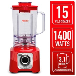 Faça receitas de todos os tipos e tenha uma mistura uniforme e sem esforços com o Liquidificador Arno Power Max LN63 15 Velocidades 6 Lâminas 3,1L Vermelho 127v.