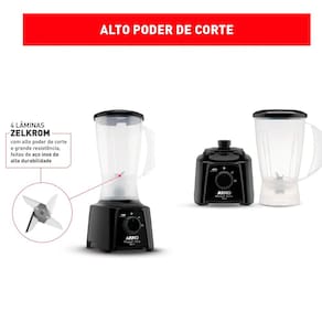 Liquidificador Arno Powermix 550W conta com 550W de potência e lâminas Zelkrom, feiras com aço inox de alta durabilidade, prático e perfeito para seu dia a dia!