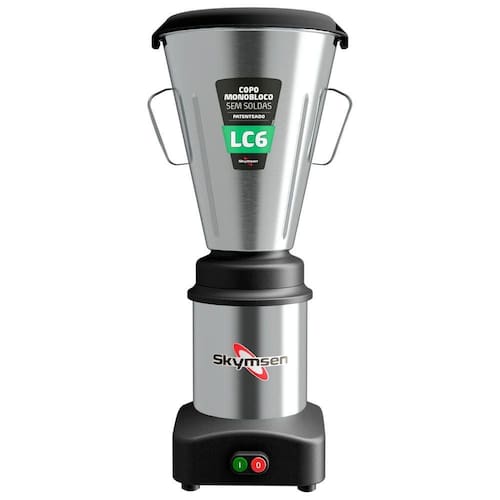 Liquidificador Baixa Rotação 6 Litros Lc6 Skymsen Liquidificador Comercial 6 Litros 110v Liquidificador Comercial Inox 6 Litros LC6MB Skymsen. O liquidificador comercial LC6 é indicado para restaurantes, cozinhas industriais, hotéis, cantinas, creches e hospitais. Seu inovador motor de 0,5 CV de baixo consumo, garante alto torque para preparos consistentes entregando eficiência energética, baixo consumo de energia e um melhor custo-benefício. Com rotação de 4.500 rpm, é o liquidificador de baixa rotação ideal para o preparo de molhos, condimentos, maioneses, pastas, sopas e cremes. Exclusivo Copo Monobloco: Produzido a partir de uma peça única de aço inox e com formato em V, permite a formação de um vórtice que direciona todo o alimento para as lâminas, independente do volume, triturando de forma homogênea e em menor tempo. Sem soldas e sem frestas, possui cantos arredondados e por isso é de fácil limpeza e higienização, evitando o acúmulo de resíduos, uma das principais causas do mau cheiro e da proliferação de microrganismos. Possui tampa de borracha atóxica com dosador que garante boa vedação e a possibilidade de adicionar ingredientes durante o preparo. POTÊNCIA: 500 W. POTÊNCIA DO MOTOR: 0,5 CV. CONSUMO: 0,5 kWh. PESO: 6,15 kg. CAPACIDADE: 6 L. FREQUÊNCIA: 50-60 Hz. ROTAÇÃO: 4.500 rpm. DIMENSÕES EXTERNAS (CxAxL): 30x72x31cm. Desenvolvido em conformidade com as especificações da norma NR-12 e do Inmetro. Liquidificador Comercial Inox 6 Litros LC6MB Skymsen é na Atau. Marca - Skemsen Modelo - LC6 Frente - 31cm Altura - 72cm Profundidade - 30cm Rotação - 4500RPM Capacidade - 6 Litros Peso - 6Kg Motor - 0,5CV Ean: 7895707565548