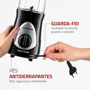 Leve suas bebidas para onde quiser! Com o liquidificador Blender DG01 da Mondial você prepara sucos, vitaminas, shakes e coquetéis e pode carregar para academia, escritório ou qualquer outro lugar. Os 300W de potência proporcionam um excelente desempenho no preparo das bebidas.