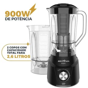 Com 2 copos com capacidade de 2,6L, o Liquidificador Britânia BLQE01 é ideal para as mais variadas e diferentes receitas! Os copos são mais duráveis e resistentes à riscos e manchas, já seus 900W de potência garante toda eficiência e desempenho.