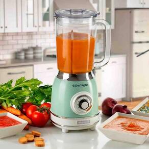 Liquidificador copo de vidro vintage retro verde água 220v A marca italiana ariete chega ao brasil com uma linha de produtos diferenciada, e para chegar com força total, o liquidificador com 4 lâmina e design vintage copo de vidro, é um dos diferenciais da marca. Com o liquidificador ariete vintage com copo de vidro, você pode preparar sua bebida preferida todos os dias, misturando os ingredientes e misturando-os uniformemente. Com 4 lâminas de aço inoxidável e 1000w, aliadas às 4 velocidades disponíveis, são ideais para misturar tudo o que preferir, até gelo com a função pulse. Além disso, graças à prática tampa medidora, você pode inserir os ingredientes diretamente no copo do liquidificador a partir do orifício na parte superior. O desempenho de um excelente liquidificador elétrico e o design típico da linha ariete vintage unem-se em um liquidificador perfeito para trazer um toque de estilo retrô à sua cozinha. Características do produto Material: vidro, metal, aço inoxidável Cor: verde água Dimensões: 21p x 18,5l x 40,5a Peso: 3,96kg Capacidade: 1,5l Marca: ariete Voltagem: 220v de 8 meses Imagens ilustrativas e dimensões aproximadas, os demais produtos não acompanham o item. As cores podem variar de acordo com a tela do celular ou computador. Itens inclusos: 1 liquidificador vintage Limpeza e conservação Não usar abrasivos Homologação Anatel: 005491708855 Marca: Não Informado Ean: 8003705119376