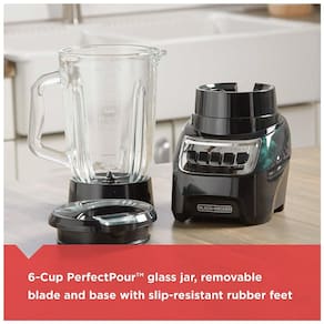 Frasco de vidro PerfectPour de 6 xícaras O frasco de vidro grosso e resistente tem uma sensação clássica com desempenho avançado, e o bico é moldado para derramar fácil e sem derramar. Motor de 700 W O motor energético fornece 700 W com desempenho máximo para esmagar e misturar facilmente uma variedade de ingredientes. Para uso contínuo, o liquidificador usa 350W de potência. Tecnologia de lâmina QuadPro de 4 pontas A lâmina de mistura de aço inoxidável de 4 pontas funciona com a forma do frasco para criar um fluxo constante e vórtice que leva os ingredientes diretamente às lâminas para um desempenho de mistura rápido. Peças removíveis para lava louças A limpeza é muito fácil com o jarro, a lâmina e a tampa laváveis na máquina de lavar louça. Tampa com Bico de Despejo e Ranhura de Ingredientes Mantenha a tampa presa enquanto você despeja graças ao prático bico de derramamento com dobradiça e fechamento. Além disso, o slot de ingredientes articulado permite adicionar líquidos e sólidos durante a mistura