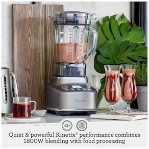 O Breville Super Q é um liquidificador super rápido, mais potente e mais pessoal, de qualidade comercial; O motor mais poderoso, 5 programas com um toque e 12 configurações de velocidade garantem texturas suaves e macias com menos ruído graças à tecnologia de supressão de ruído.