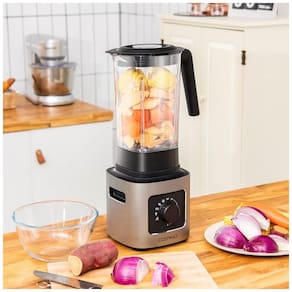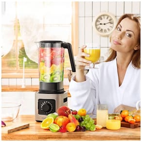 Com um motor robusto de 1500W, o liquidificador atinge uma velocidade de 28.000 rpm, permitindo que você processe diferentes alimentos rapidamente. Além disso, suas 6 lâminas afiadas de aço inoxidável podem triturar ingredientes de diferentes durezas, incluindo gelo, vegetais, frutas e nozes.