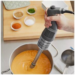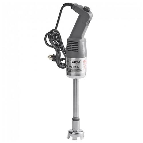 Com o Liquidificador de Imersão Robot Coupe MMP240VV Mini, você pode facilmente e rapidamente processar frutas, legumes e muito mais! Este aparelho possui um motor de 290 watts e velocidade variável que atinge de 2.000 a 12.500 RPM, com autorregulação de velocidade para garantir excelentes resultados a cada uso. O tamanho compacto e o eixo de aço inoxidável de 25,4 cm tornam este liquidificador ideal para liquefazer, triturar e misturar pequenas quantidades de sopas, molhos, patês e muito mais na sua cozinha comercial. Além disso, conta com sino, lâmina e eixo de aço inoxidável, e um disco emulsificador, todos removíveis para facilitar a limpeza. Adicionalmente, é possível adquirir separadamente um acessório batedor para maior versatilidade. Requer conexão elétrica de 110V.