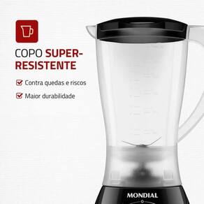 - Resistente a Quedas e Riscos: O copo dos liquidificadores Mondial é super-resistente e garante mais durabilidade para seu aparelho;