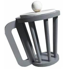 - contém: 1 liquidificador em madeira pintada com tinta atóxicamedindo 10 x 10 x 21 cm, copo e tampa removíveis em madeira acondicionados em caixa de papelão.