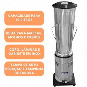 O liquidificador LQL10 baixa rotação capacidade de 10 litros, perfeito para preparar massas, molhos e cremes com adição de liquidos.