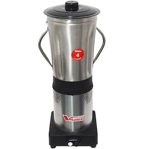 Liquidificador Industrial Vitalex de baixa rotação com copo de 4 litros. Alta qualidade e robustez para atender às demandas de uma cozinha de alta performance. Ideal para preparo de sucos, molhos, sopas, temperos e massas leves. Sistema de arrefecimento de motor de alto desempenho para uso prolongado.