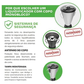 A nova Linha L foi projetada para atender às exigências de desempenho, robustez e eficiência nas cozinhas profissionais. Essa linha traz um motor de indução mais potente, silencioso e de alta durabilidade. O copo monobloco em aço inox, com design em V, favorece a formação de um vórtice que tritura os ingredientes de forma homogênea e eficiente. Sua construção sem soldas e frestas facilita a higienização. Equipados com um motor de indução de 3.500 rpm, os liquidificadores da Linha L são ideais para uso contínuo, oferecendo baixo nível de ruído e alta resistência ao desgaste. O acoplamento metálico sextavado e as lâminas reforçadas garantem uma transmissão de torque mais eficiente e a capacidade de suportar preparos pesados, como sopas, cremes e smoothies. Além disso, a chave seletora blindada possibilita o uso bivolt, adaptando-se perfeitamente às necessidades do estabelecimento. Os liquidificadores da Linha L são compatíveis com os copos e lâminas da linha LS.