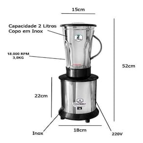 Um eletrodoméstico indispensável na sua casa. O liquidificador JL Colombo AR o ajudará a obter resultados incríveis em tudo o que você preparar, seja para desfrutar de uma bebida gelada, de molhos e sopas, ou de sobremesas deliciosas. Tenha-o sempre ao alcance da sua mão! O liquidificador de alta rotação é recomendado para o preparo rápido de sucos, vitaminas e shakes líquidos (não densos). Atenção: não é Bivolt. Não bate massas densas e não bate açaí. É necessário a utilização de líquidos na hora de bater. Produto com certificação no INMETRO.