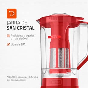 Com copo de 2,2 litrosde capacidade máxima, sendo 1,6 litros de útil em sua jarra, você pode fazer vitaminas, shakes, caldos, como também misturas que vão servir em suas receitas como pastas e recheios. Um mundo de possibilidades.