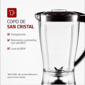 Equipado com motor potente, o L-28 Power 2 Black garante resultados rápidos e homogêneos. Suas lâminas de aço inoxidável são resistentes e eficientes, triturando gelo e ingredientes mais duros com facilidade. Ideal para o dia a dia, ele simplifica o preparo de diversas receitas.