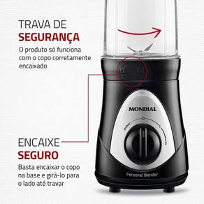 - VIDA SAUDÁVEL + PRATICIDADE: Com a correria da rotina diária, costuma ser um desafio seguir uma alimentação saudável, né? Com o Blender Mondial, você pode preparar sucos naturais, vitaminas ou suplementos de forma rápida e prática, e carregar com você para onde for! Muito mais fácil para manter os bons hábitos alimentares! Atenção: para funcionamento do produto, girar o copo para desativar a trava de segurança.