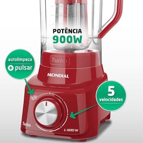 Liquidificador Mondial Turbo, 900W, Vermelho - L900 - 110V