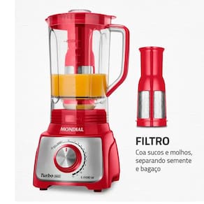 Ele conta ainda com a funcao pulsar, funcao autolimpeza e tampa dosadora, que permite acrescentar ingredientes durante o preparo da receita. E mais! Com a funcao filtro, fazer sucos e molhos ficara ainda mais facil, pois ele ja separa o bagaco e sementes.