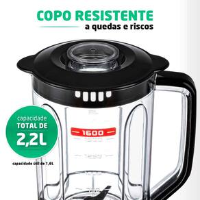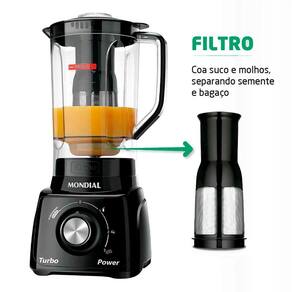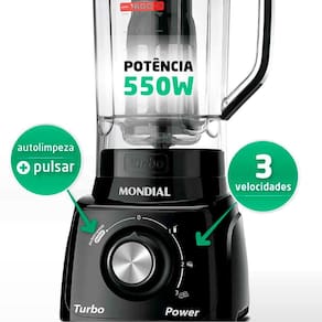 Liquidificador Mondial Turbo Power L99 Jarra de San Cristal 22L 550W 3 Velocidadesbr br O Liquidificador Mondial Turbo Power L99 Jarra de San Cristal 22L 550W 3 Velocidades perfeito para voc que busca praticidade e eficincia alm de ter um design lindo ele potente e vai ajudar voc a preparar vrios tipos de receitas de forma prtica e eficientebr br Caractersticas principaisbr Lminas super afiadasbr Copo ultra rresistente com capacidade de 22 litros total e 16 litros tilbr Filtrobr 3 velocidades e funo pulsarbr Funo autolimpezabr Tampa com medidor de 40mlbr Sistema de encaixe rpidobr Base antiderrapantebr Capacidade da Jarra22 Lbr br Dimenses aproximadas do produto AxLxP40 x 21 x 20 cm A x L x Pbr Peso aproximado do produto sem embalagem13 kgbr br Itens Inclusos 1 Liquidificador Filtro Manual de instruobr br Garantia do Fornecedor 12 mesesbr br Observaesbr Imagem meramente ilustrativabr Todas as informaes divulgadas so de responsabilidade do fabricantefornecedorbr As cores podem sofrer variaes de acordo com o tipo configurao e resoluo do seu monitorbr No nos responsabilizamos pela montageminstalao dos produtosbr Verifique a antes de colocar no carrinho