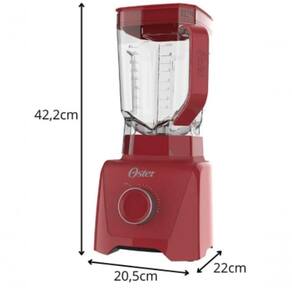 Liquidificador Oster Ultra Black Turbo 15 Velocidades 1400w Vermelho 220v Com o Liquidificador Oster, seu dia-a-dia na cozinha fica muito mais fácil. São 1400W de potência com 15 opções de velocidade + Pulsar. Prepare as mais diversas receitas em seu liquidificador Super Potente Oster. Possui jarra em material com capacidade de 3,2L, alça anatômica e tampa com medidor de até 100ml para mais precisão na adição de ingredientes da sua receita. EspecificaçõesMaterial/Composição: PlásticoAlimentação: Energia ElétricaConsumo: ência: 1400WVoltagem: 110V ou 220V (NÃO é bivolt)Base antiderrapante: SimCaracterísticas dos batedores: Lâmina em inox com 4 pontasCaracterística do copo/tigela/tampa: Copo em SAN Cristal Ean: 7898700210354
