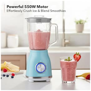 O liquidificador de bancada OVENTE BLH2604LBL foi projetado para preparo de smoothies, shakes, sopas, molhos e bebidas geladas em uso doméstico, combinando motor de 550W com jarra em vidro de 1,5L. A base em aço inox escovado com seletor frontal giratório oferece até 4 velocidades mais função pulsar, permitindo ajustar a força de processamento conforme a textura desejada para diferentes tipos de ingredientes.