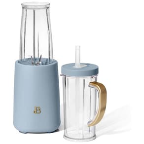 Marca: Beautiful Coleção: Beautiful by Drew Barrymore Modelo: E19285 Tipo de produto: Liquidificador pessoal com conjunto de copos Cor: Azul fosco Acabamento: Soft-matte (fosco suave) Capacidade do copo de viagem: 473ml Capacidades adicionais: Copo intermediário aproximadamente 400ml e copo de moagem aproximadamente 180ml Potência: 240W Voltagem: 110V Tipo de acionamento: Sistema twist/operado por giro manual do copo na base