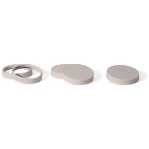 O kit inclui base com motor, copos de diferentes capacidades, tampa de viagem com alça e canudo com sistema anti-pingos, além de tampas para armazenamento e anéis de acabamento para beber diretamente no copo. Os recipientes são produzidos em material livre de BPA, compatíveis com lava-louças na prateleira superior, enquanto a base é acionada por giro, facilitando o uso em bancadas compactas.