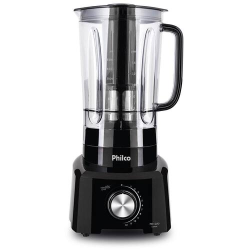 - O Liquidificador Philco PH1200 Preto possui 12 velocidades + pulsar / autolimpeza, ideal para preparar vitaminas, molhos, sopas cremosas e muito mais! - Com 1200W de potência e função ice, que tritura gelo com maior facilidade e rapidez; - Além da faca de 6 lâminas, ultra afiadas e resistentes; - Sua tampa é com sobretampa e orifício, permite adição de ingredientes durante o preparo; - Com copo de Acrílico super- resistente com capacidade máxima de até 3L, suas receitas prediletas na quantidade perfeita; - Acompanha filtro que separa o suco da semente e do bagaço; - E para sua maior comodidade, possui base antiderrapante, garantindo maior segurança no manuseio;