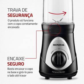 SimLeve suas bebidas para onde quiser! Com o Personal Blender da Mondial, acompanha 2 copos de 750mL cada, assim você prepara sucos, vitaminas, shakes e coquetéis e pode carregar para academia, escritório ou qualquer outro lugar. Os 300W de potência, lâminas em aço inox e 2 velocidades + pulsar, proporcionam um excelente desempenho no preparo das bebidas. Aproveite a qualidade que a Mondial oferece!