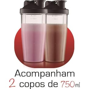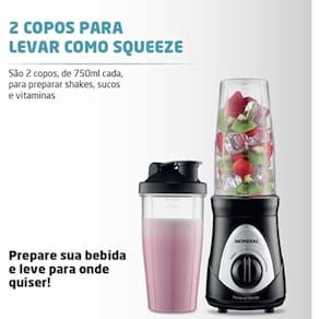 O personal blender da mondial é um liquidificador individual perfeito para preparar shakes, suplementos, sucos, vitaminas, coquetéis e muito mais. Com 2 copos resistentes e tampa, você pode preparar e levar pra onde quiser, se torna um prático squeeze. Com lâminas em aço inox e 2 velocidades mais pulsar, é ideal para triturar frutas e cubos de gelo. Conteúdo da embalagem: - 01 - liquidificador - 02 - copos de 750ml cada - 01 - manual caraterísticas: - capacidade de 750 ml. - a sua potência é de 300 w. - lâmina resistente de aço inoxidável. - funciona com 2 velocidades. - suas preparações favoritas prontas em poucos minutos. Especificações técnicas: - modelo: personal blender - cor: preto/prata - potência: 300w - consumo: 0,30kw/h - copos: 750 ml cada - velocidades: 2 - cor: preto e prata - liquidificador portátil: sim - vianx- Este produto possui 12 meses de garantia. Imagens meramente ilustrativas. A garantia é responsabilidade do fabricante e esta limita se apenas á troca de qualquer produto encontrado com defeitos de fabricação desde que tenha sido utilizado corretamente ou devidamente instalado por um profissional qualificado.