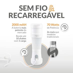 você precisa preparar seu shake na academia seu suco no trabalho sua vitamina na praia ou no camping e não consegue, pois o liquidificador é pesado, muito grande ou no local não tem energia elétrica pois bem, estes problemas acabaram com o blender retrátil você consegue bater seus shakes, sucos, vitaminas, smoothies e muito mais em qualquer lugar. Ele é o único liquidificador portátil do brasil com sistema retrátil e bateria recarregável usb. É um novo conceito em liquidificador portátil e pessoal, o inovador sistema de retração reduz o tamanho de 29 cm para apenas 13 cm de altura, podendo ser facilmente transportado, até mesmo na bolsa. Se você acha que essa maravilha para por aqui, pode se preparar, que além de todas essas vantagens nosso liquidificador ainda possui um sistema de segurança magnética mss , que só permite o funcionamento do motor quando o copo estiver devidamente alinhado com a base. Incrível não vai ficar aí parado não perca esta oportunidade e compre agora mesmo o mais inovador liquidificador portátil do brasil