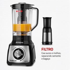 Função filtro: O filtro em inox separa sementes e bagaços, deixando sucos e molhos prontos para servir. E o melhor, tudo isso sem precisar coar!