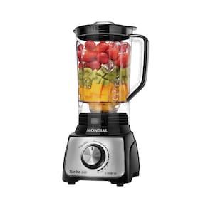 Agora você já pode ter mais força e eficiência para preparar diversos tipos de alimentos. O Liquidificador Mondial Turbo Inox Black L-1100 BI 1100 W de potência e copo tamanho família de 3,0 litros de capacidade total para preparar grandes quantidades. São 12 velocidades + Pulsar para que você possa escolher a velocidade ideal, conforme o tipo de ingrediente a ser preparado. Seu sistema de encaixe rápido permite uma montagem fácil e prática. Além disso, a função filtro faz com que a fruta entre e sai o suco ou molho filtrado e a faca super afiada em aço inox garante mais eficiência ao triturar os alimentos.
