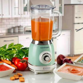 As lâminas de aço inoxidável também podem cortar gelo finamente, para preparar raspadinhas caseiras ou coquetéis refrescantes. O Liquidificador Vintage Ariete Verde 1,5 Litros 220v com copo de vidro é potente e funcional, perfeito para dar um toque de estilo à sua cozinha. Descubra toda a linha Ariete Vintage e complete a coleção com os eletrodomésticos mais emblemáticos de sempre.