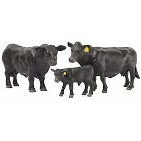 1/16 Black Angus Bull Calf com Ear Tag mfd por Little Buster Toys. Estes bovinos são feitos de um plástico sólido. 2,75" de comprimento por 2" de altura. Idade 3+