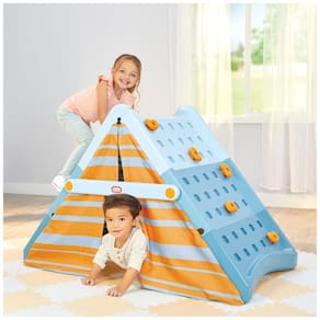 Leve a aventura de acampar e escalar para a casa do seu pequeno com esta parede de escalada 2 em 1. Este conjunto de brincar se expande para revelar uma grande barraca esconderijo, criando um novo e divertido espaço para as brincadeiras. As paredes podem ser ajustadas para criar diferentes ângulos de escalada, e os pinos de escalada podem ser fixados tanto do lado de fora quanto por baixo das paredes da barraca. Perfeito para brincadeiras internas e externas, essa parede de escalada estimula a diversão ativa para as crianças, enquanto praticam habilidades motoras. Ao finalizar as brincadeiras, a parede dobra facilmente para uma rápida limpeza e armazenamento. Limite de peso máximo de 60 libras para duas crianças. Fabricado nos EUA. A Little Tikes Company está localizada no coração da América. AVENTURA NA ESCALADA Com essa parede de escalada 2 em 1 e barraca, as crianças podem se divertir com brincadeiras ativas enquanto praticam habilidades motoras. DESIGN AJUSTÁVEL Ângulos da parede de escalada ajustáveis para apoiar na parede ou ficar em pé sozinha. BARRACA ESCONDERIJO Área da barraca grande e espaçosa que se abre entre as paredes de escalada para um espaço de brincadeira adicional. 10 PINOS DE ESCALADA Inclui 10 pinos de escalada com parafusos de aço inoxidável para manter as pegadas seguras. Os pinos podem ser fixados para escaladas tanto do lado de fora quanto por baixo da superfície de escalada. DURABILIDADE Material da barraca é feito de tecido resistente a intempéries projetado para durar. Superfície de escalada é de alta qualidade e durável para maior segurança. ARMAZENAMENTO FÁCIL Dobra facilmente para limpeza e armazenamento. BRINCADEIRA ATIVA Esta parede de escalada é um presente ideal para crianças a partir de 3 anos.