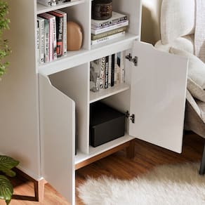Na parte superior, oferece prateleiras bem distribuídas que formam 8 nichos perfeitos para livros, objetos decorativos e itens de uso cotidiano.