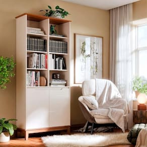 Seu design clean e moderno não só embeleza o espaço, mas também oferece amplo espaço de armazenamento para livros, decorativos e muito mais.