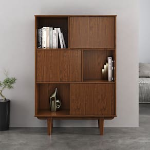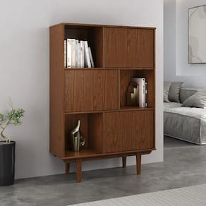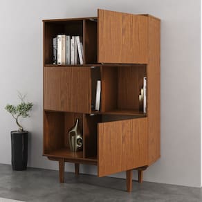 Com design assimétrico e estrutura marcada por linhas limpas, a Estante 3 Portas e 3 Nichos Cor Castanho Madeira Maciça de Pinus Simona imprime sofisticação e leveza ao ambiente. Inspirada no estilo escandinavo, ela combina nichos abertos e Portas fechadas em uma composição funcional, perfeita para organizar com elegância.
