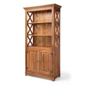 Livreiro rústico em madeira maciça, com prateleiras amplas e armário de duas portas para mais praticidade. O detalhe em ?X? adiciona charme e personalidade, unindo funcionalidade e elegância.