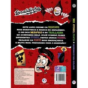 Livro: 365 Ativ., Desafios E Desenhos Para Colorir - Enaldinho Este livro reúne os passatempos mais divertidos e irados do Enaldinho: o rei dos DESAFIOS e da TROLLAGEM. Na companhia dele, você poderá fazer diferentes atividades, pintar vários desenhos, realizar os desafios mais engraçados e muito mais. Preparado para a diversão