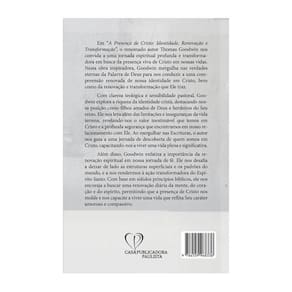 Não perca a oportunidade de adquirir o Livro A Presença De Cristo - Thomas Godwin Baseado Na Bíblia e embarcar em uma jornada espiritual profunda e transformadora. Renove sua identidade em Cristo, experimente a renovação e transformação que Ele traz e encontre uma profunda segurança em seu relacionamento com Ele.