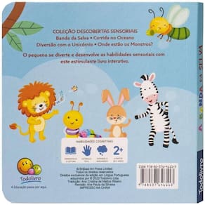 Livro Banda Da Selva Descobertas Sensoriais **A Banda da Selva** Esse livrinho encantador faz parte da coleção *Descobertas Sensoriais* e é ideal para crianças a partir de 2 anos. Com 10 páginas repletas de cores e ilustrações vibrantes, ele convida os pequenos a embarcarem em uma aventura musical junto aos bichinhos da selva. A capa texturizada proporciona uma experiência sensorial única logo de início, chamando a atenção das mãozinhas curiosas.
