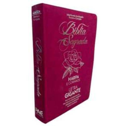 Bíblia Sagrada Rosa - Com Harpa e Corinhos, letra gigante, palavras de Deus em azul, palavras de Jesus em vermelho, promessas em destaque e mapas coloridos.