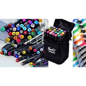 Acompanha 24 canetinhas ponta dupla, oferecendo uma variedade de cores vibrantes que tornam a experiência de pintura ainda mais divertida. Este conjunto é uma excelente opção para atividades em casa, proporcionando um espaço para que as crianças se expressem artisticamente enquanto relaxam e se divertem.