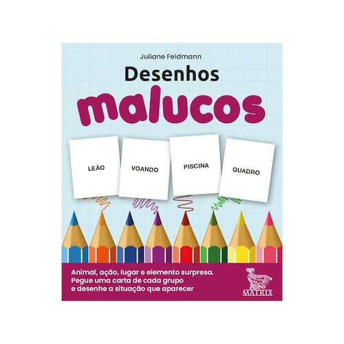 A diversão está pronta para começar. Este livro-caixinha traz 40 cartas, divididas em 4 grupos: animal, ação, lugar e elemento surpresa. A criança pega uma carta de cada grupo, de forma aleatória, e deve desenhar a situação mostrada pelas 4 cartas. São centenas de combinações possíveis. Criatividade e alegria que não acabam mais.